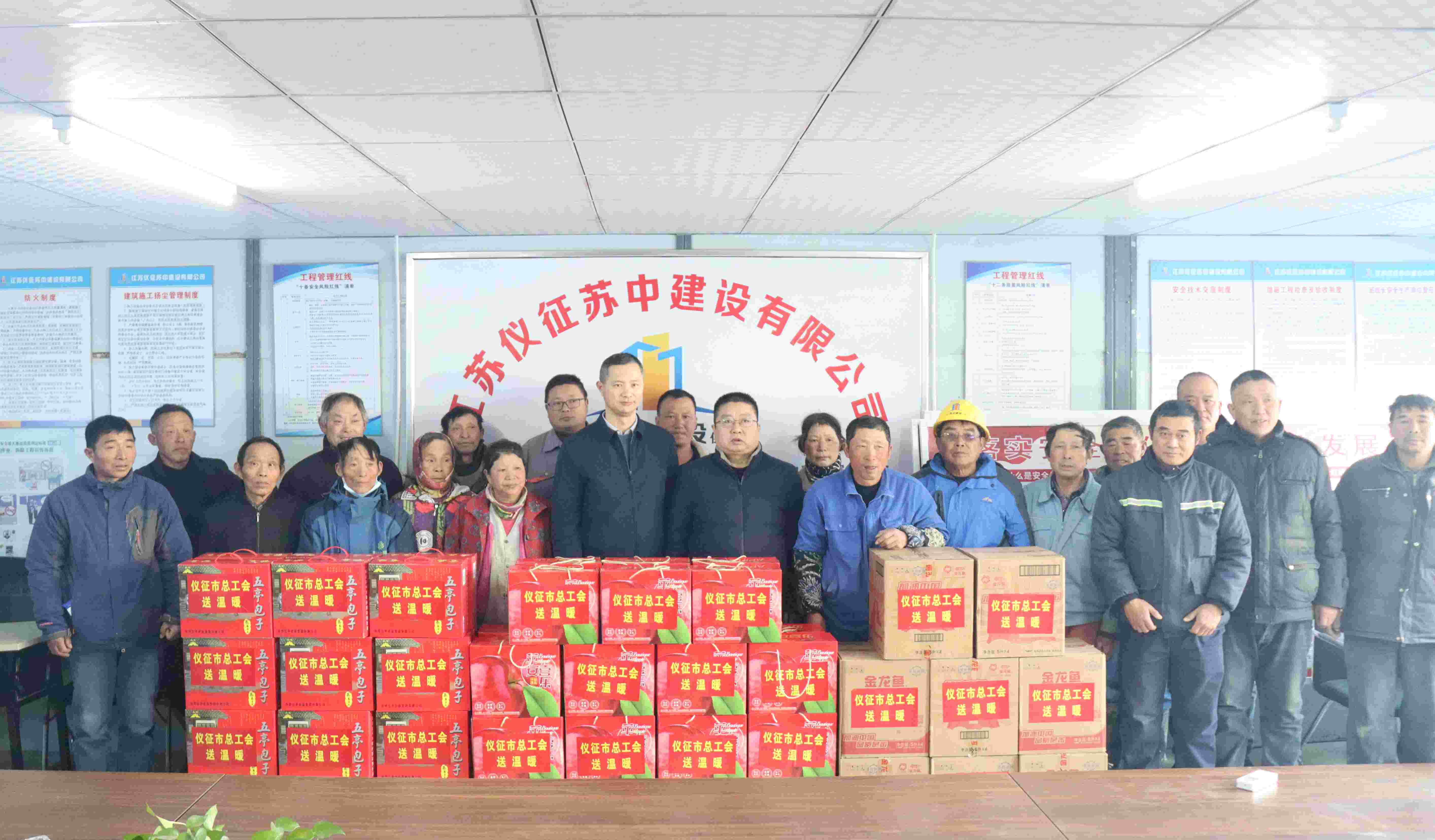 在新春佳節來臨之際,儀征市總工會來到公司翰林府項目,為翰林府項目40多名農民工兄弟送來冬日的…